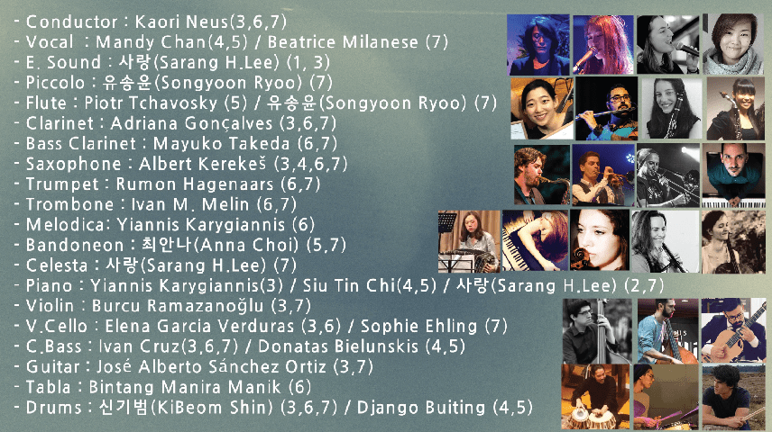 – Piano : Yiannis Karygiannis(3) / Siu Tin Chi(4,5) / 사랑(Sarang H.Lee) (2,7)