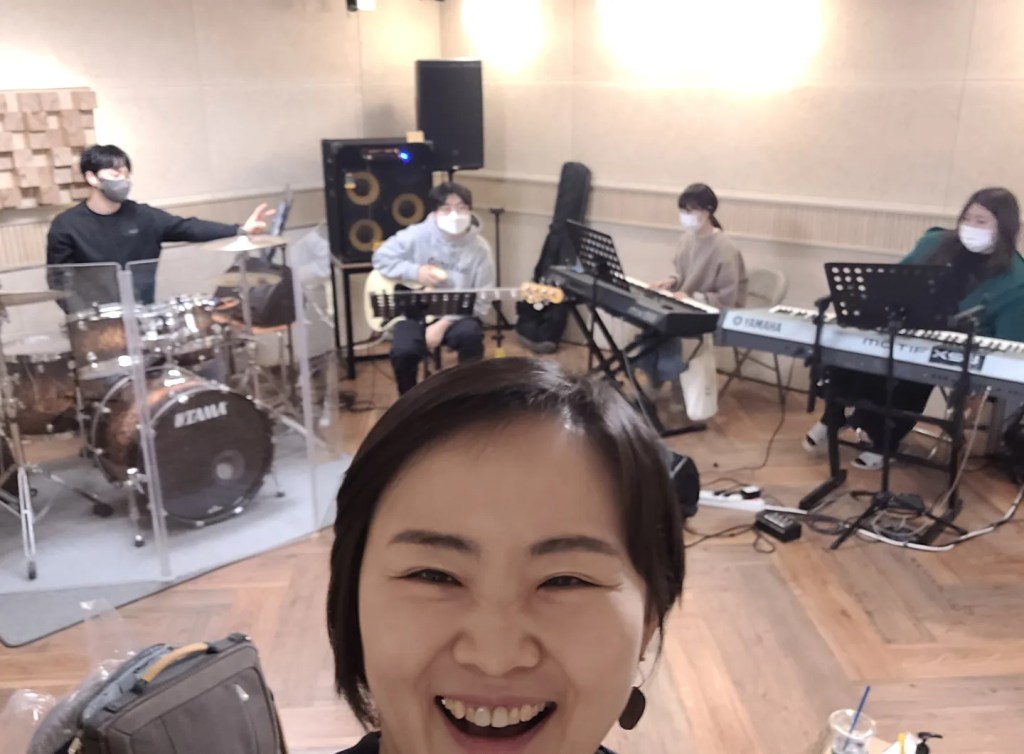 I worked as a keyboardist with them for 5 years until I quit for my study, and even after I left, we’ve kept supporting each other as sincere colleagues for 8 years. What a friendship!