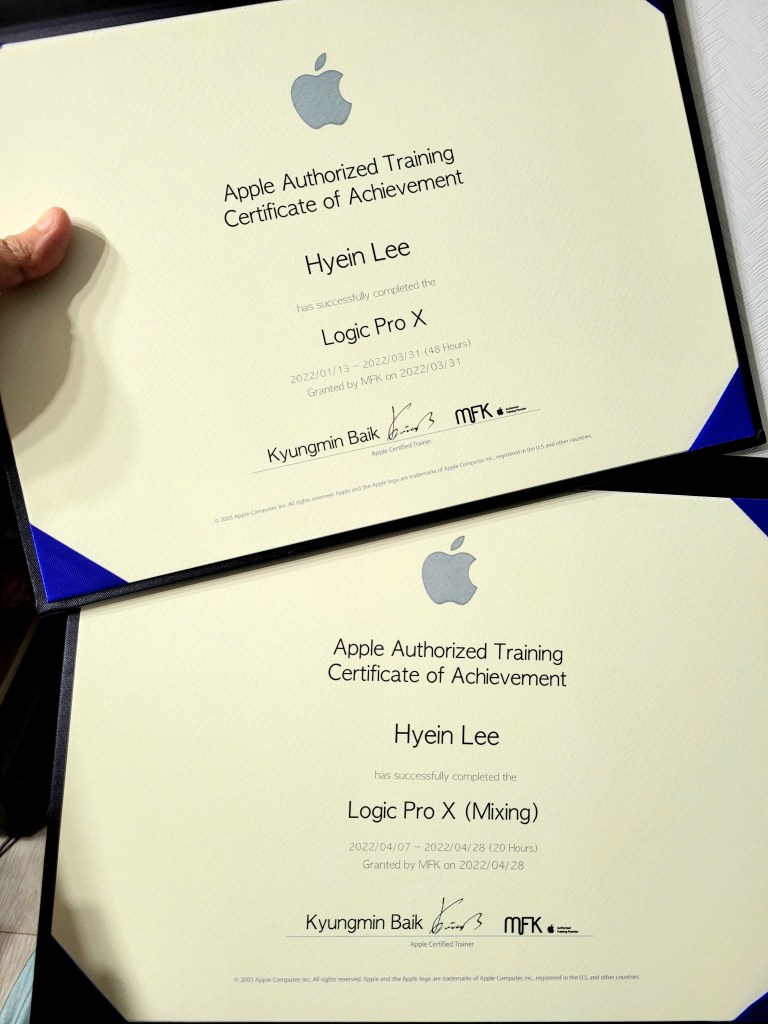 The Certificates Of Achievement from Apple Authorized Training Center in Seoul, Korea.