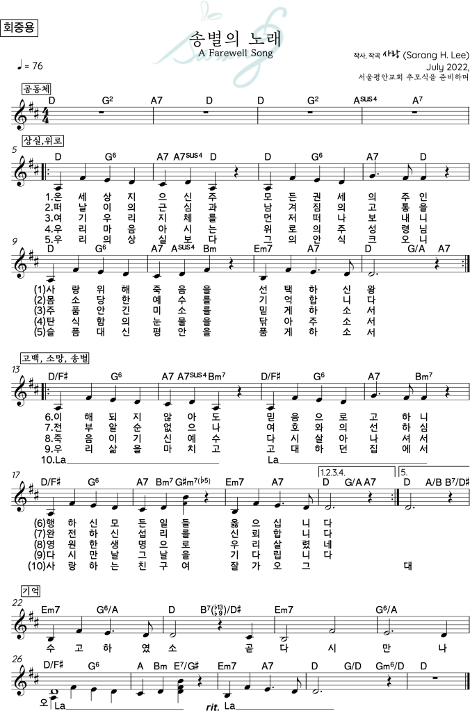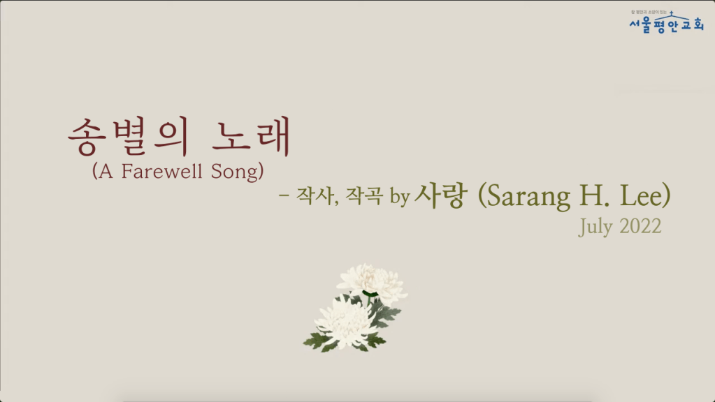 위의 노래는 2022년 7월 10일 서울평안교회의 추모식에서 처음 선보인 곡입니다.