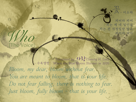 Who[The Voice](원작 : ‘꽃’ – 이소라)– Translated by 사랑 (Sarang H. Lee)– 수록앨범 :‘When the Blue Bloom Blooms‘ (2020) / … More